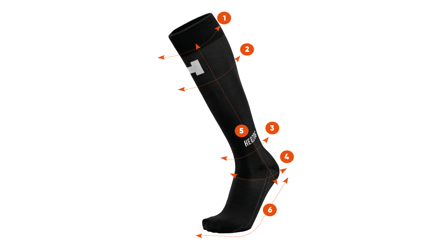 Herzog PRO Compression Socks offer relatively high compression around the ankles (30 mmHg), which gradually decreases towards the knee (23 mmHg). The socks work in tandem with the calf muscle pump to accelerate blood flow through the veins. The increased pressure on the tissue helps push excess fluid, including waste products from metabolic processes, back into circulation. The decreasing pressure of the socks ensures that blood is efficiently returned to the heart against gravity. Herzog compression socks support effective circulation, reduce the risk of edema, and promote faster recovery after exertion.